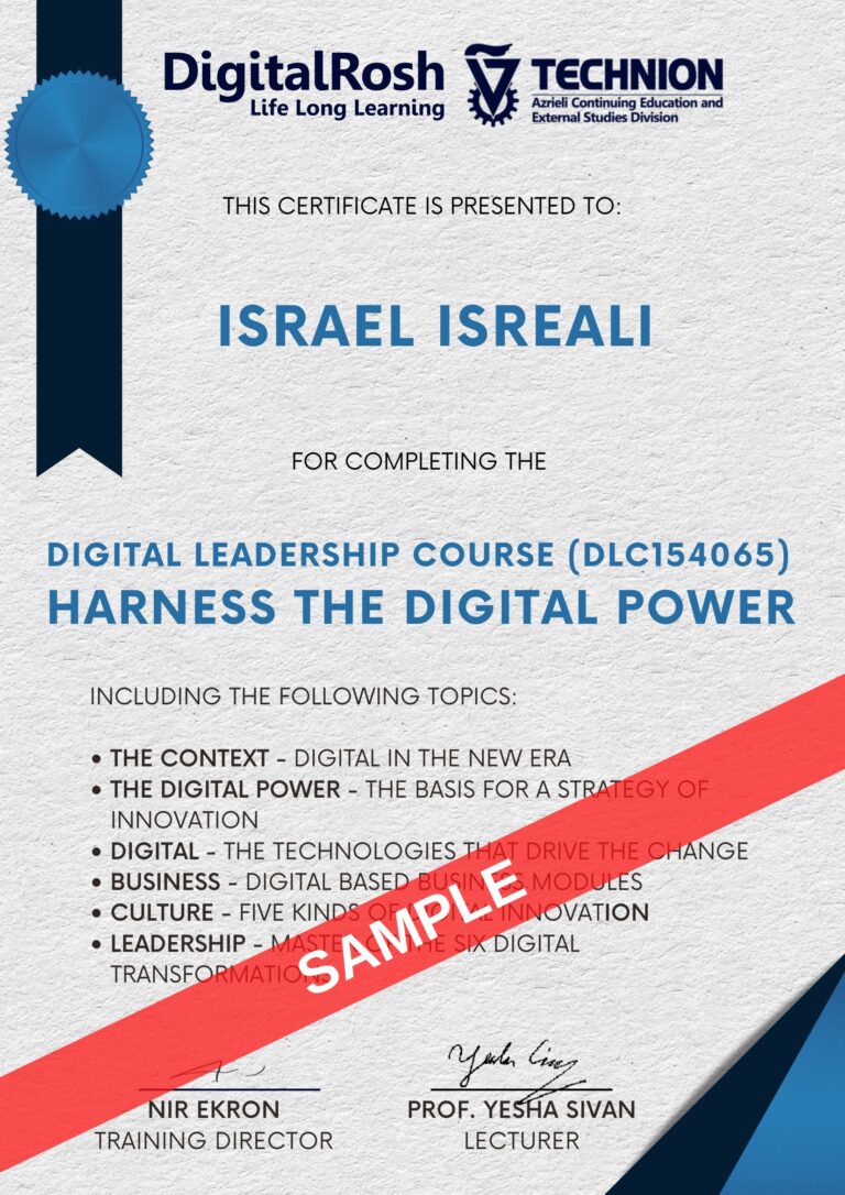 • תעודת הסמכה מהטכניון ודיגיטלראש