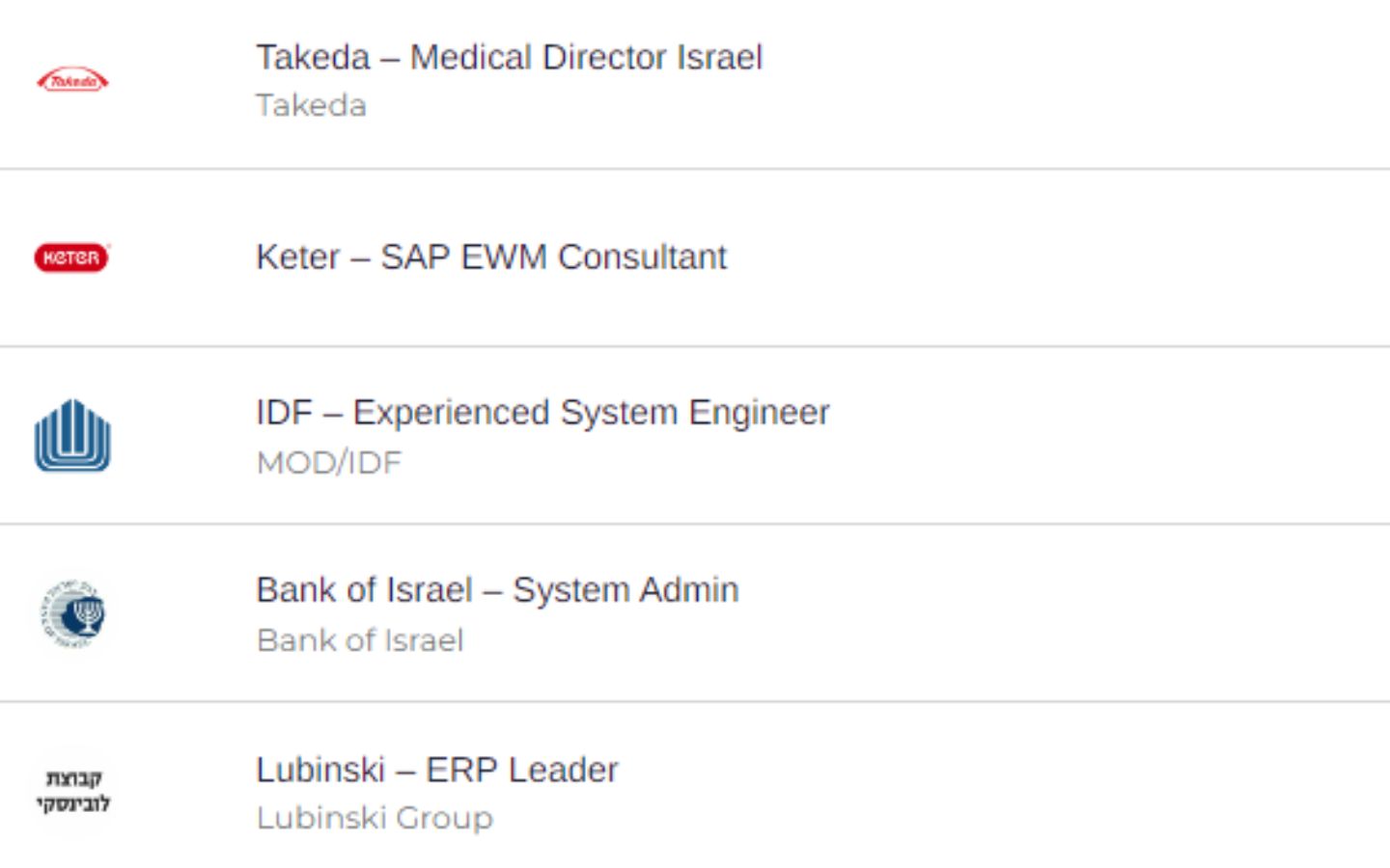 - Jobs:Medical Director Israel at Takeda, System Admin at Bank of Israel, and more.