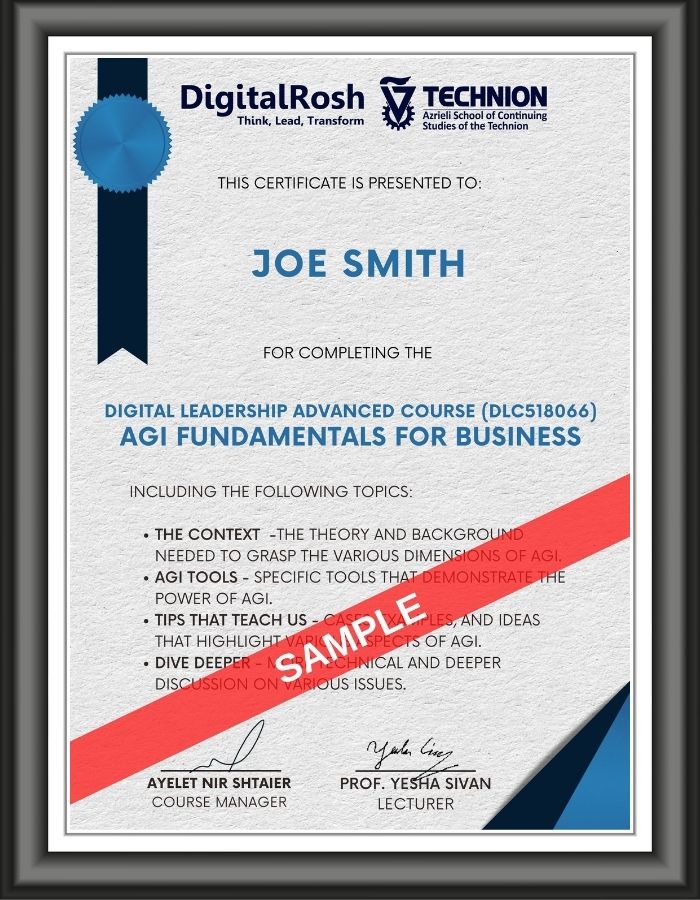 The course builds upon lectures delivered by Prof. Sivan through 2023 and 2024. Prof. Sivan provides insights into the context of AGI from technological, managerial, and cultural perspectives. He covers essential tools and offers teaching examples to illustrate key concepts. We believe the course establishes the level of knowledge which is essential for every manager.